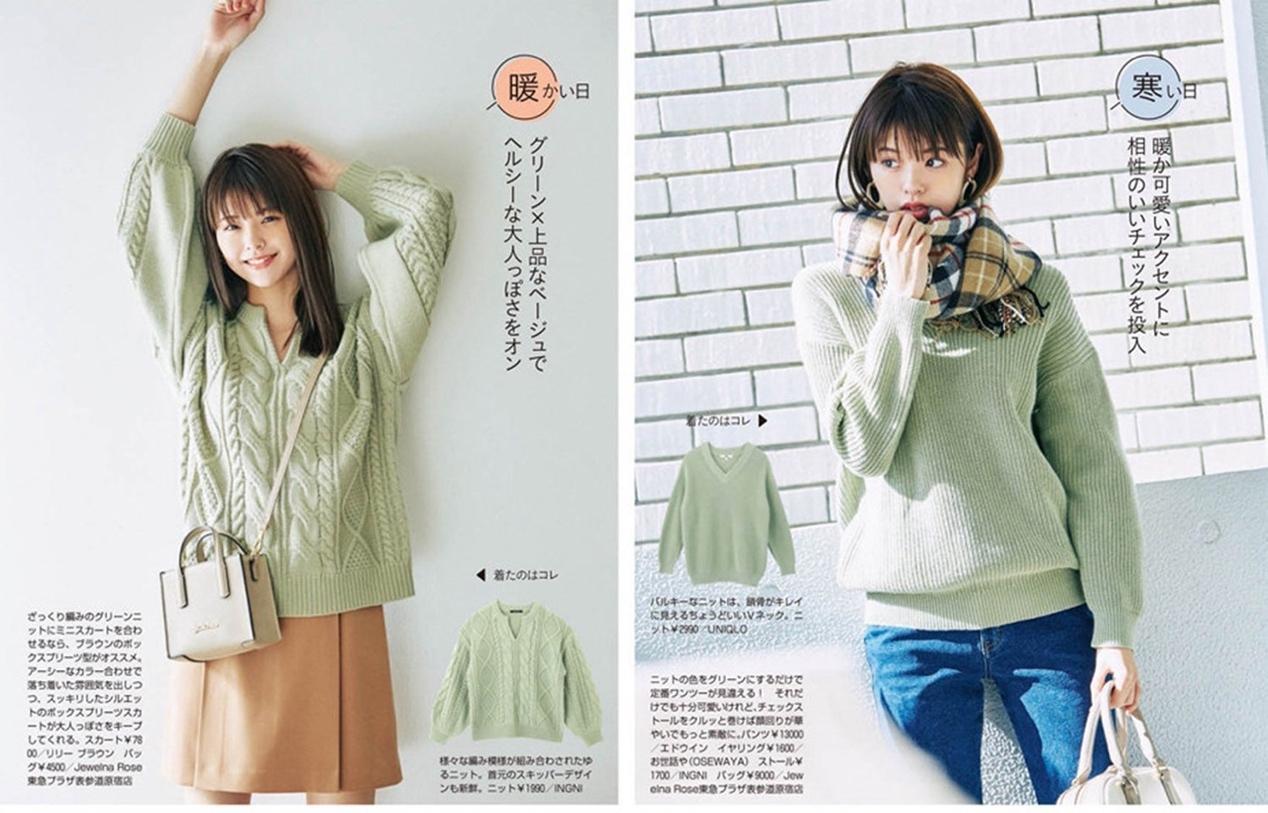 轻薄、柔软的开衫或T恤才是正解,跟薄荷绿给人的印象也更接近。▼