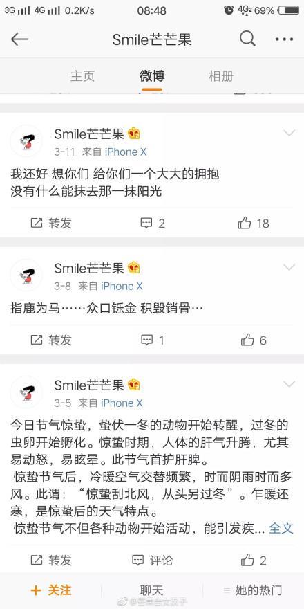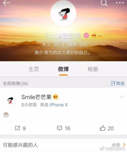 自从年初李小璐出轨PG ONE的新闻曝光后,往日在微博上相当活跃的李小璐这半年来仿佛是消声秘迹了。算上转发的微博,李小璐今年以来一共才发表了五篇微博,这不禁让我们疑惑,对微博有深厚感情的李小璐难道就这么离开微博这片江湖了么?直至近日,有网友爆料出来李小璐名叫smile芒芒果的小号,我们才发现,小璐还是那个小璐,对微博依旧爱的深沉。