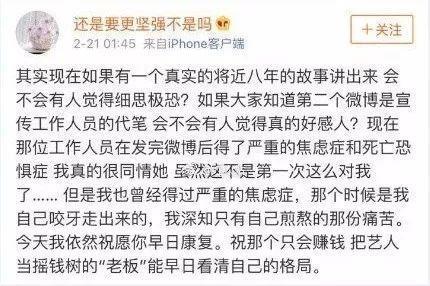 李小璐的微博小号今年活跃度之高,非常有李小璐往日的风格,那么李小璐的小号到底都说了些什么呢?从最开始一月二月的时候,感慨网络暴力,认为很多数人都是看热闹,根本不在乎事情的真相是什么。到突然在2月3号发布了一条疑似认错的微博。