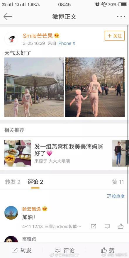 李小璐还在微博上感谢了一路以来支持她的人,但是整体微博来看,还是以晒与女儿的日常为主。这不由的让人想到了另一个与李小璐有相似经历的人,那就是王宝强的前妻马蓉。自与王宝强传出婚变的传闻后,马蓉自称微博大号被晋封,也采用了微博小号的方式晒日常,而微博里主要的内容也都是与孩子的生活日常。