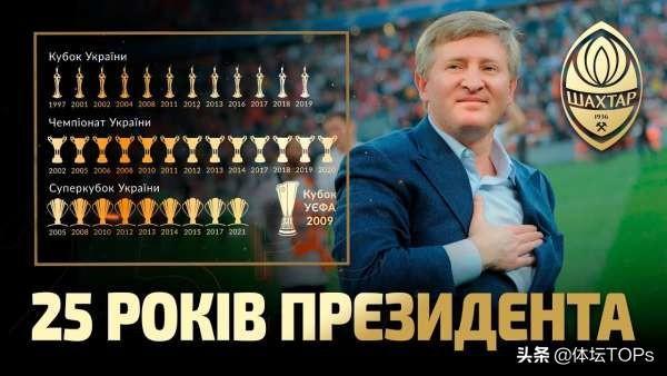 作为地地道道的顿涅茨克人,阿克梅托夫不遗余力地为家乡球队投入,2009年,随着能容纳52000人、现代化的顿巴斯竞技球场在顿涅茨克竣工,拥有东欧第一座现代化体育场的矿工在乌超的统治力进一步得到巩固。2009/10赛季至2013/14赛季以及2016/17赛季至2019/20赛季,矿工分别实现了乌超的五连冠和四连冠。