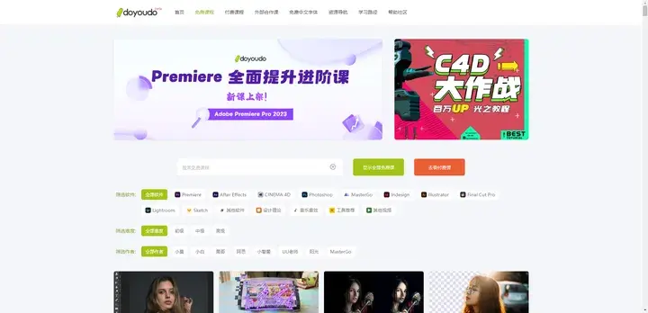 一个专门针对视频剪辑和平面设计等方面的学习网站,课程包含视频剪辑、平面设计、特效合成、三维动画等等。