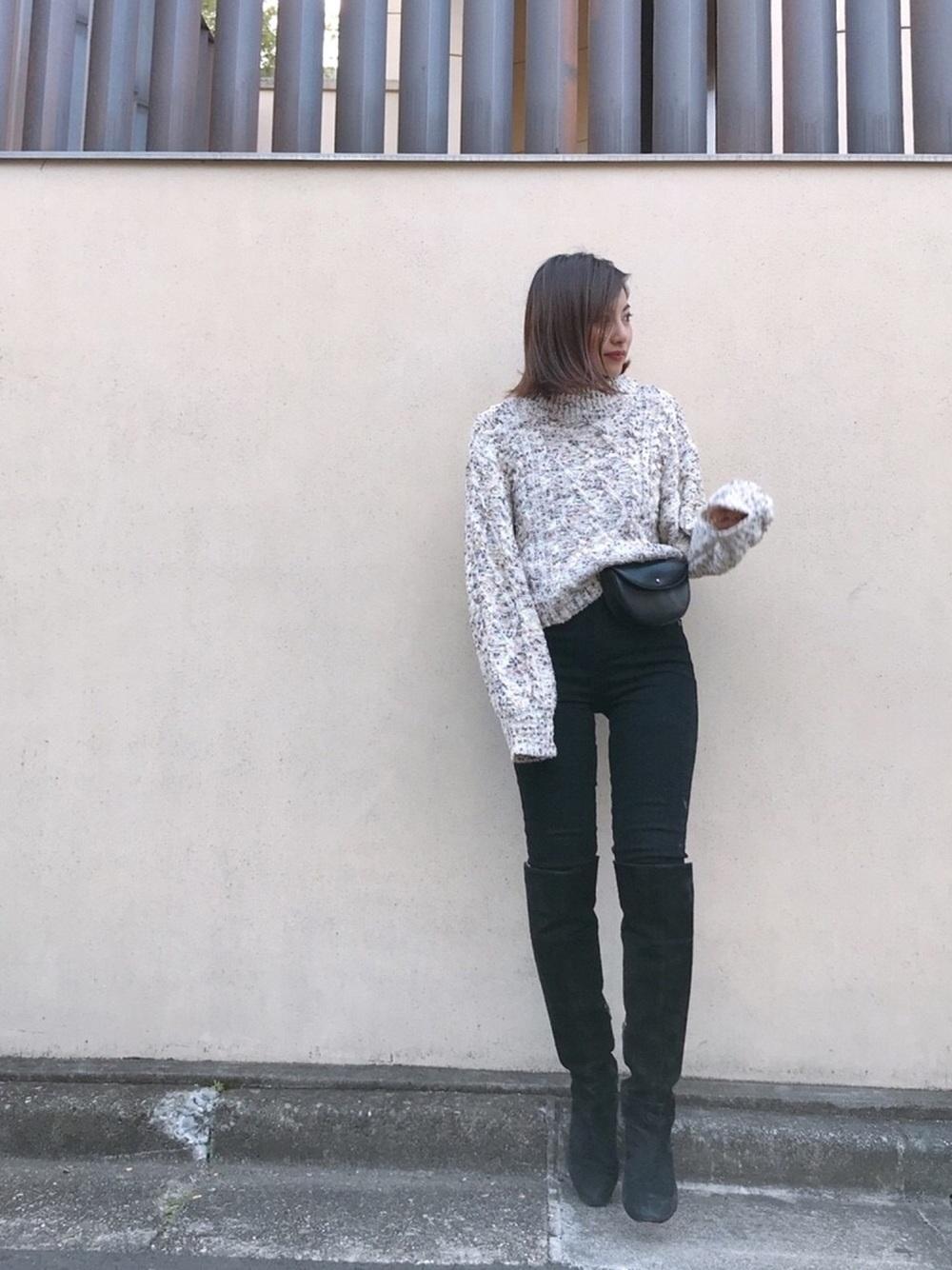 如果你是比较保守、不喜欢露腿的女孩,则可以选择合身版型的牛仔长裤和过膝靴搭配出比较个性感的穿搭~合身版型的牛仔裤不但能让腿看起来更笔直、更显瘦,穿上有点高度的过膝靴还能让小只女孩的目测身高直接变成170呢!