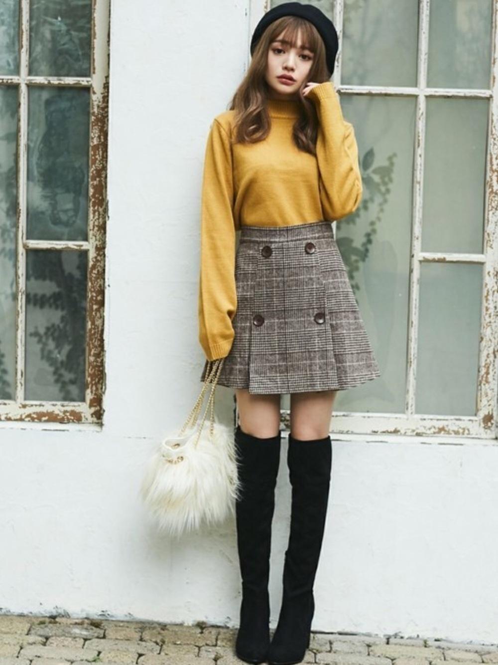 如果你是喜欢甜美风格穿搭的女孩,不妨试试用今年秋冬很夯的A字裙来搭配过膝靴吧!用高领毛衣+格纹A字裙+过膝靴的穿搭组合,穿出充满浓浓秋冬气息的甜美女孩穿搭~A字裙不但可以把女生在意的大腿部位完美修饰,过膝长度的靴子遮住了萝卜腿,让腿只露出膝上短短一截最不必担心的部位,这样的穿搭意外的让腿看起来更长更纤细了呢!