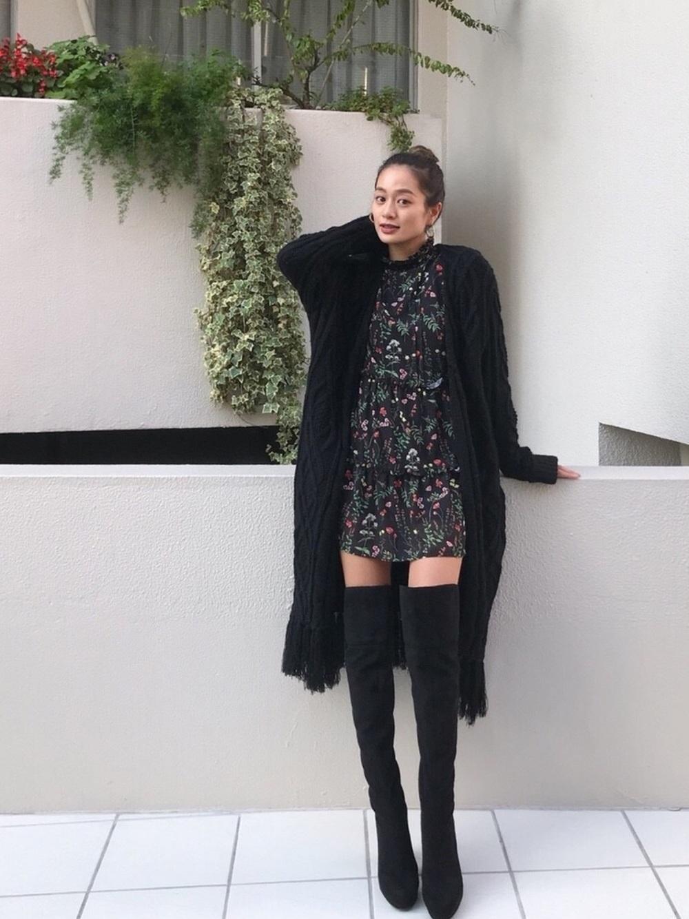 过膝靴+连身短洋装