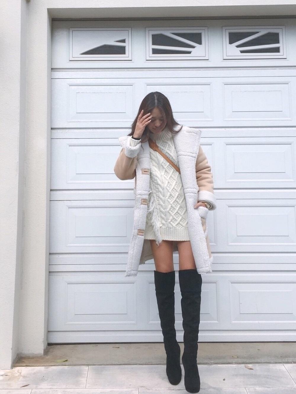 而把裤装换成连身短洋装再搭上一双过膝靴,马上就能从街头个性女孩摇身一变成准备去参加年末趴踢、重要约会的甜美女孩~不管是合身性感的洋装,还是慵懒宽松的长版针织毛衣,只要套上一件再穿上过膝靴,就能完成充满女人味又能快速出门的过膝靴穿搭!