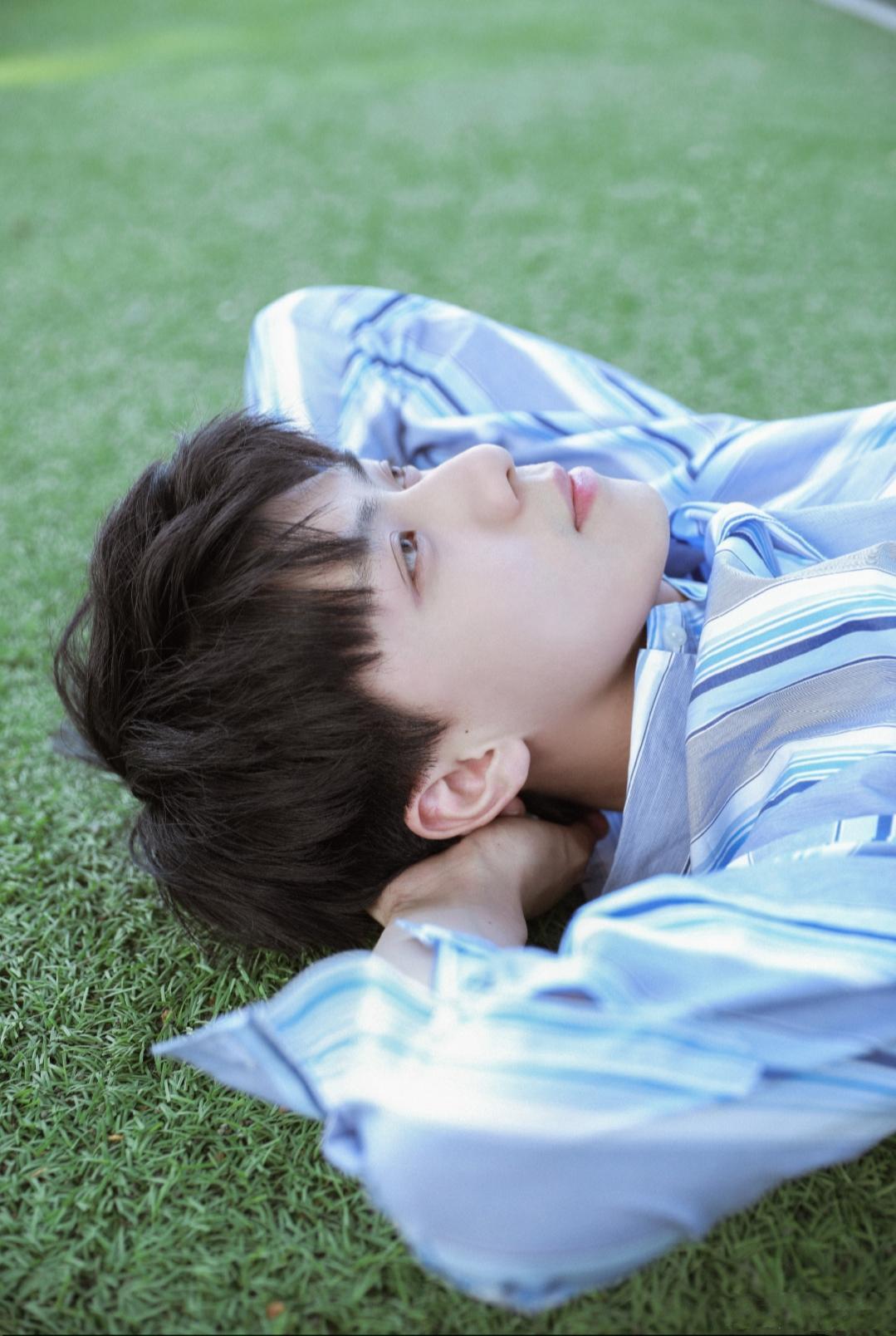 躺在草坪上的任宥纶,真的太有朝气了,双眼皮,高鼻梁,长相清秀,帅气无比。一件蓝色条纹衬衫,很好的突出了青春的气息,而且蓝色纯粹,在不经意之间透露着些许的文艺范,又将魅力散发于无形之间。《晨阳》张九已然是霸气外露,任宥纶的演技和颜值都是不容置疑的,没想到生活中的他,充满着青春的活力,休闲装更为帅气阳光。#春季完美穿搭# #变美大作战# #时尚官看点#