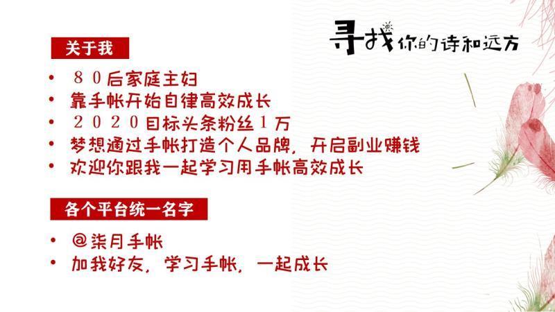 一直在学习如何利用手帐管理时间,通过自律改善生活。也希望能提升自我价值。