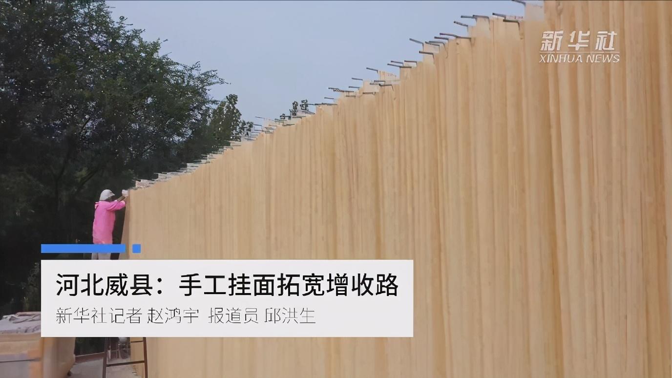 新华社10月19日播发短视频《河北威县:手工挂面拓宽增收路》,报道我市威县采取“合作社+农户”的形式,把手工挂面产业做大做强。目前当地制作的手工挂面在北京、天津、山东等地畅销,年产值2000余万元,成为当地农民致富的重要途径。