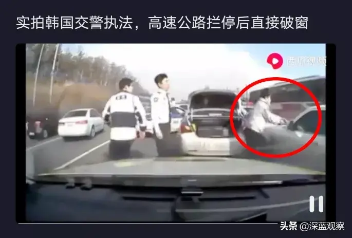 除此之外,韩国警察也有果断硬气执法的。他们一旦觉着现场情况不对,就立刻简单粗暴地掏出警棍、铁锹破窗,拦截不法分子,根本不和你多废话。