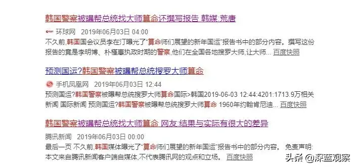 李明博、朴槿惠执政时期的警察就曾在韩国各地搜罗大师,让大师们预测各种涉及国家政治、经济、外交的重大问题,并写成报告书提交至青瓦台。