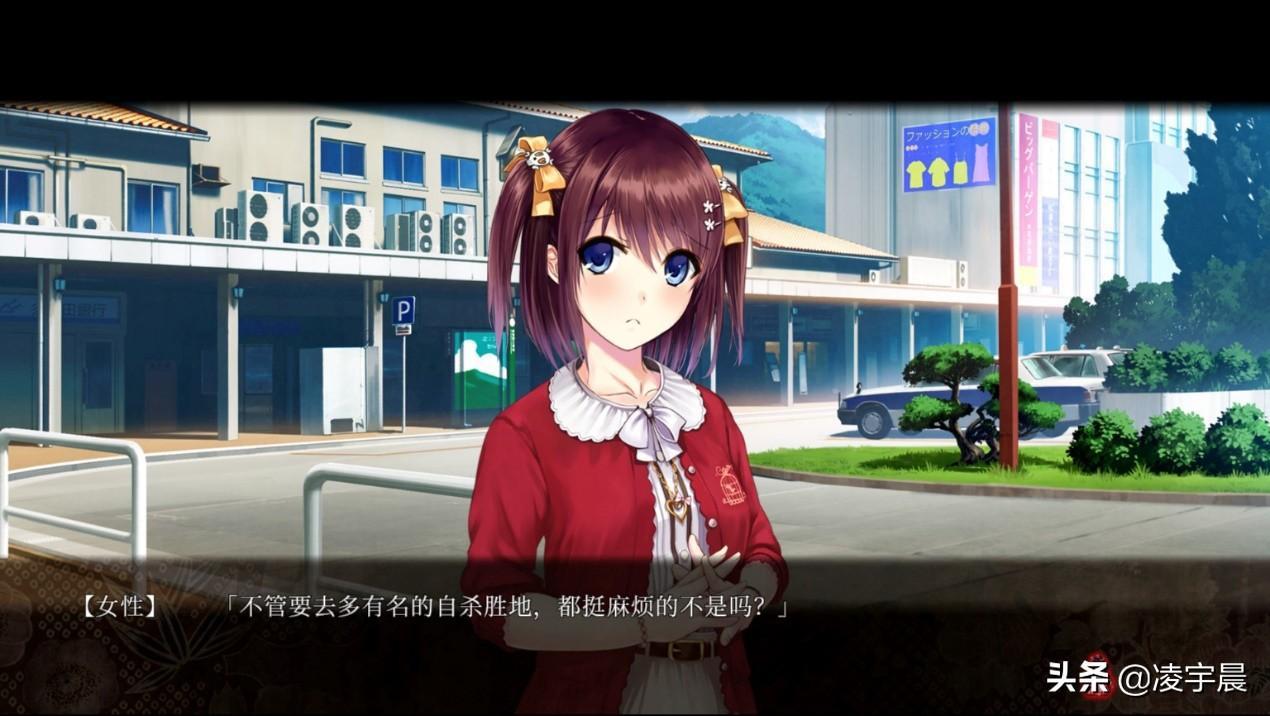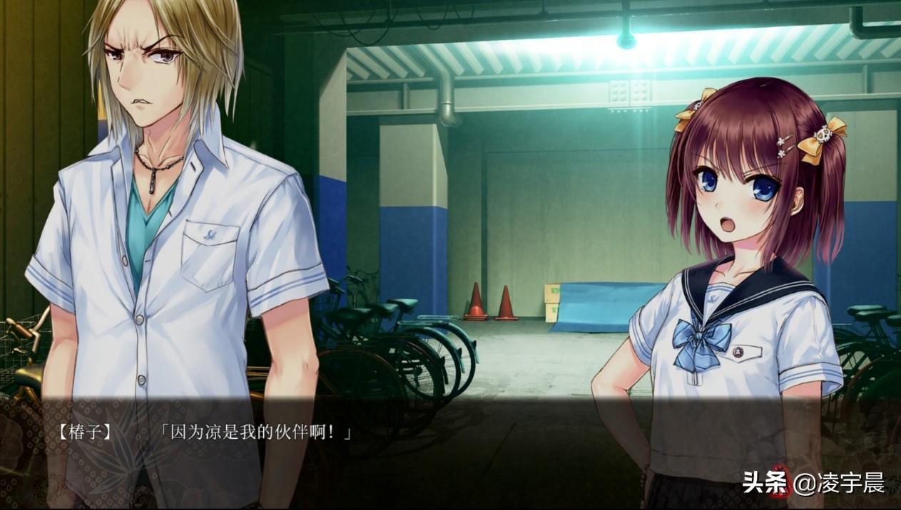 事实上,龙骑士07老师在《祝姬》一开始就给了新玩家好好地上了一课。当我端着水杯坐在电脑屏幕前,一边看着疑似青梅竹马角色担当的可爱女性高中生春宫椿子在车站前等着男主角煤払凉到来、享受着悠闲的日常剧情,一边准备慢慢进入状态的时候,整个剧本的风格瞬间突变,明明按照常理来说应该是无关紧要的NPC路人突然开始聊起了过激话题,而且话题的走向非常不对劲,更让人惊讶的是作为重要角色的春宫椿子居然也随着话题的引导一步步滑向深渊。虽然这样的桥段只不过是龙骑士07老师炫技似的牛刀小试,但也足够抓住玩家们的眼球了,至少我是瞬间兴奋了起来。