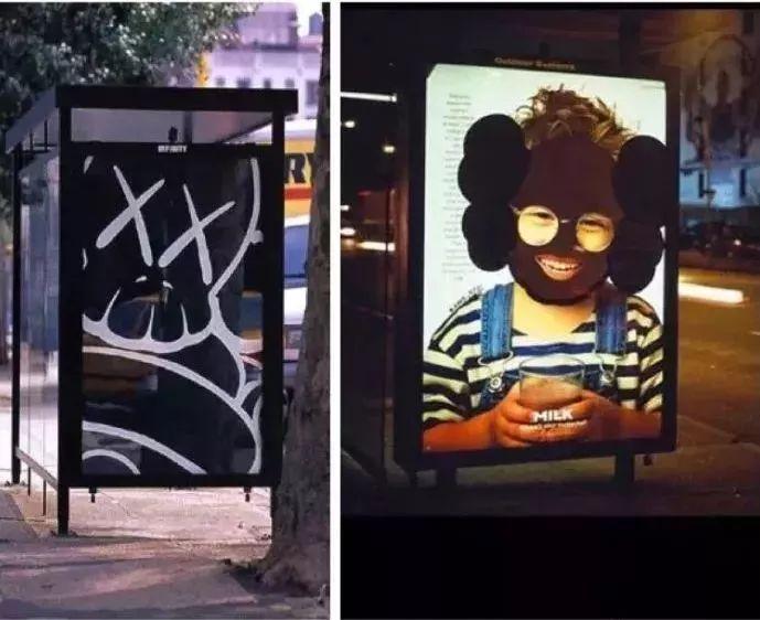 但是!Kaws还有一个隐藏身份:每当夜幕降临,他就会出现在街头,对城市中的广告牌涂鸦创作,再将它们放回原位。