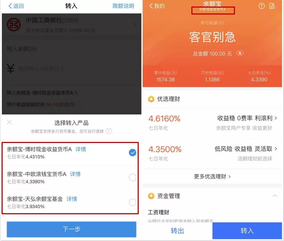 大家最关心的肯定还是收益率,目前看起来,三个宝宝的收益率上,博时>中欧>天弘。 但是这个收益是暂时的。因为按照货币基金的配置原理,想要收益高,需要多配30天以上的中长期资产。我查了下这几只货基,博时30天以上的短期资产只有3成,中欧有6成,天弘将近5成。另外,你的收益率还跟基金公司收取的费率有关。这方面博时最贵,中欧最便宜,天弘在两者之间。所以一旦余额宝升级完成,大量的资金分流之后,未来的这三只基金里,收益率可能是中欧>天弘>博时。从历史业绩来看,三只货基的排位也大致如此。升级成功,不用早起抢额度了,开心不?然并卵!余额宝的根本问题,并没有得到解决啊。余额宝的问题是,规模太大,被迫限购。这个牵涉到金融风险的问题,我们就不细说了。但是规模超级大的货币基金,收益不可能高到哪里去。因为天天有几个亿的用户在随时赎回,你让基金经理怎么投资;而且这么大的规模,很难找到那么多的投资标的,收益难免落了下乘。所以这类超级货基,以余额宝为代表的,收益永远是在中下游水平。可以想象,余额宝现在1.7万亿的规模,从一个宝宝分散到三个宝宝里,那么就会出现三个超级货币基金。然后,收益率又要节节下调。折腾了半天,还是要回到解放前啊……其实现在市面上大把货币基金,收益比这三个都要高。更别提还有一些创新产品,颇有些羊毛可薅。所以你要的并不是升级余额宝,而是找到收益更高的货基。怎么选?一般高性价比的货币基金,是这么几个特点——1.规模最好在几十亿到几百亿之间(属于流动性和收益性兼备的规模区间)。2.配置较高比例的30天以上资产的。3.综合费率更低的。我筛了几个收益靠前的,大家可以考察一下。有些我自己已经用了蛮久的,在支付宝里一样可以买到。动动手指,切换下页面的问题。