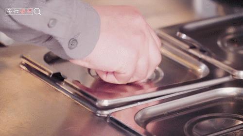 4、在台面冷藏系统里取火龙果肉70-100g。高峰期的时候,可在份数盆内放上一次性手套,直接用手抓取果肉,提升工作速度。