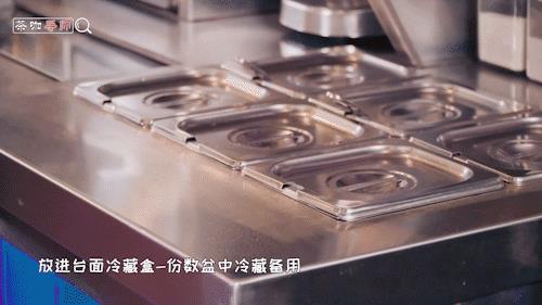 延伸讲解:台面冷藏系统在水果茶的出品流程中,是非常重要的设备。在茶饮店装修设计之初,考虑动线的时候,就应该将这一系统考虑其中。鲜水果丁、片、搬、肉放在台面冷藏系统里,取用更加方便,大大提升工作效率,还能使原料归纳整理到位。