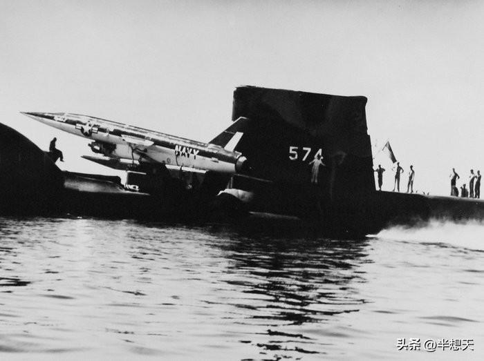 图为一枚 SSM-N-9 Regulus II 巡航导弹准备从 SSG-574 Greyback “灰背”导弹潜艇发射