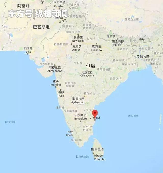 印度第四大都市金奈坐落于孟加拉湾的岸边(红色图标处)图源:谷歌地图截图