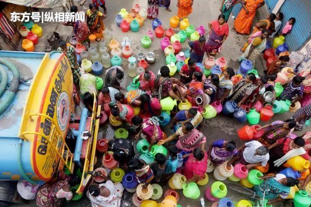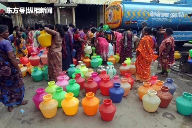 金奈市居民带着罐子在街头领水 图源:东方IC