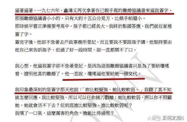 在新剧情展开前,稍微复习下“前情概要”。林婉珍在书中披露了她发现琼瑶介入自己家庭的十大内幕,包括: