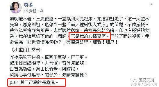 琼瑶接着贴出岳飞的词和一段视频,对林婉珍的反击就藏在其中!