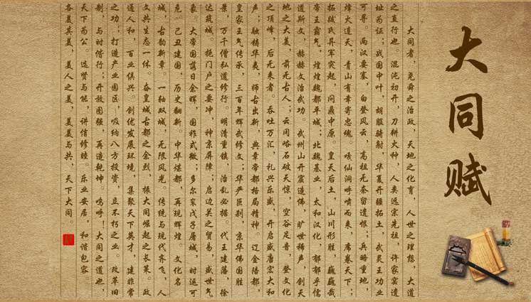 若说具体点,该如何表述和看待呢?从词义学看,辞书对赋的表述大体一致,但不尽相同。《辞源》释为“赋者,古诗之流也”,“铺叙其事曰赋”,“乃诗六义(风、雅、颂、赋、比、兴)之一”。《现代汉语词典》释为 :“我国古代文体,盛行于汉魏六朝,是韵文和散文的综合体,通常用来写景叙事,也有以较短的篇幅抒情说理的”。对赋的定义和特点,古代文人也从不同的方面和视角作过许多十分精辟的论述。有说“不歌而颂谓之赋”,有说赋为“散韵结合之文”、“诗化之文也”。刘勰则把赋的内容和形式概括为“铺采摛文,体物写志”。总之,无论是辞书还是历代文人,大都叙及了赋为亦诗亦文,即韵文和散文的综合体,及概揽宏阔、铺张扬厉的特点。