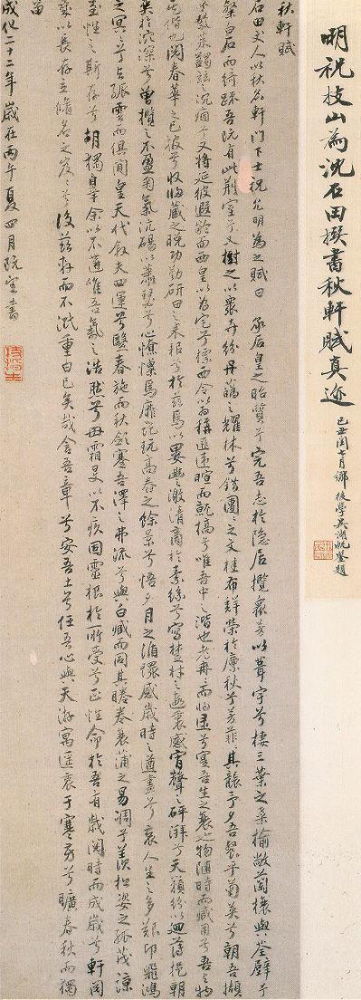 还有,对于赋的押韵和平仄,一般不作硬性规定和要求。因赋兼有叙事和咏诵的功能,所以不可能要求句句押韵,也不可能处处讲究平仄格律。它是以赋文的要求而灵活处理的。事实上,因大多数赋的篇幅较格律诗为长,所以一般极少有一韵到底的,有的随章节换韵,有的在一节中也可换韵。韵无定法,随文而制。至于平仄,齐梁和初唐之诗多作讲究。骈赋、律赋也比较注重。其它赋体,除韵脚之外,不甚考究平仄对仗。但这绝不是说,赋不讲究韵律和平仄,可以像现在所谓的自由诗一样,冠之以赋名便成为赋了,行文有其赋本身所遵循的规律,包括对押韵和平仄的运用。这里只是说,不宜对赋的各句各节均作硬性要求而已。