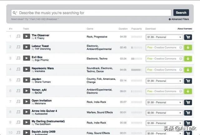 注意:在使用任何网站的音乐前,请先了解六种Creative Commons授权(CC授权)的正确使用方法。在不同的授权下有不一样的使用限制,但都需要你链接回原创作者页面。