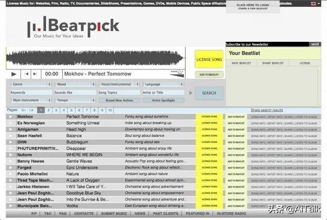 在BeatPick,你有一个类似播放器的功能,可以收听列表里的任何歌曲。如果要从网站下载任何音效,你必须要注册一个帐户。