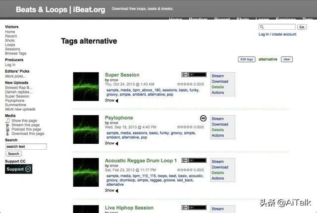 如果你是一名DJ,或是要寻找一些免费的节拍、循环音乐,iBeat拥有庞大的音乐资料库,采用Creative Commons授权方式。这些节拍可以用于各种风格的音乐,例如摇滚节奏、嘻哈、甚至是一般声乐或电子节拍。无须注册。(http://ibeat.org/)
