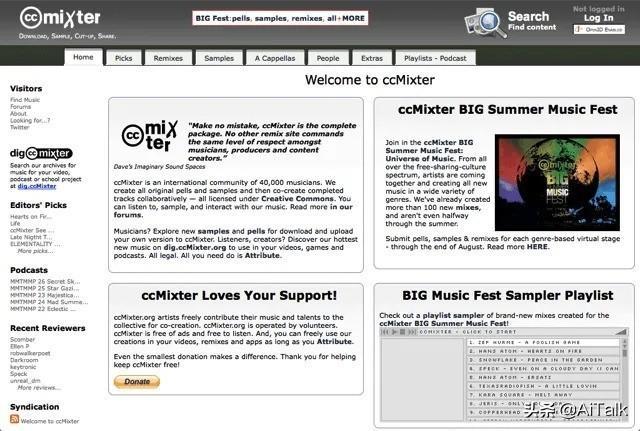在这个网站上的音乐可以随时下载、分享给任何人、或分享至任何地方。在这里的音效主要用于DJ音乐混音。有各种的范本可以选择,音乐是以标签描述进行分类。(http://ccmixter.org/)