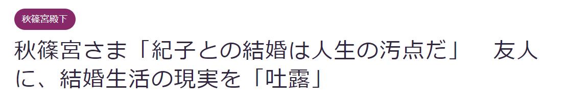 《秋筱宫:“和纪子结婚是我人生的污点”》,这篇文章说:对于文仁而言,与这样“妖怪”一样的人结婚,是他人生最大的污点,但是也只能说他是自作自受……