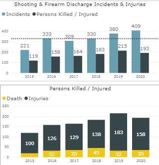 2015-2020多伦多枪击案件、伤亡人数统计表(来源:多伦多警察局)