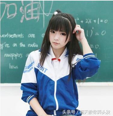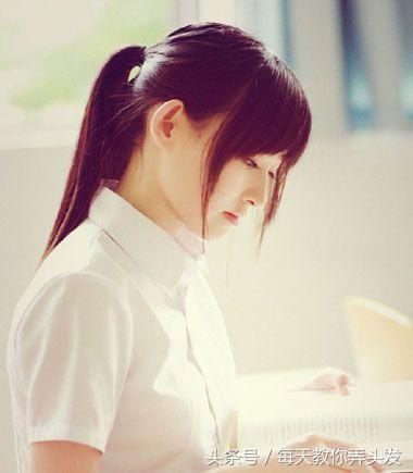 白衬衫,午后的阳光,构成了女生记忆中的高中生涯。还处在学生时期的妹纸们,扎发也要花费些心思打理哦。斜刘海扎马尾辫发型,将头发顺着头型拢到脑后,用皮筋简单绷紧。