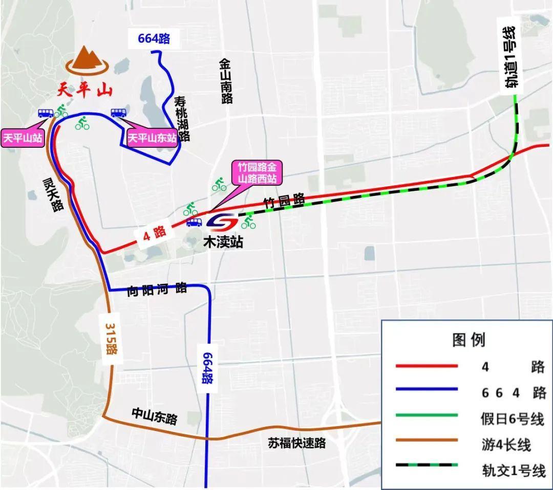 也可乘坐4路、664路、假日6号线、游4长线到达天平山景区。