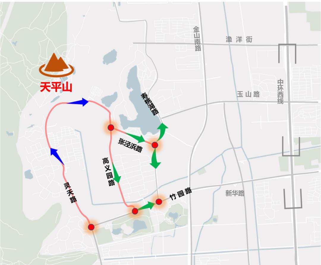 苏州交警在竹园路寿桃湖路路口、竹园路高义园路路口、竹园路灵天路路口、张泾浜路高义园路路口、张泾浜路寿桃湖路路口等地点布置警力指挥车辆有序通行,请广大市民和游客须服从现场交警指挥和管理。