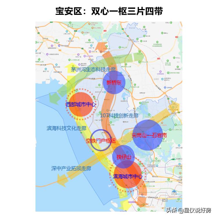 西部:主要是老工业区和城中村,东部则是山山水水;中间是新的中心区,新社区新公园新配套密集。