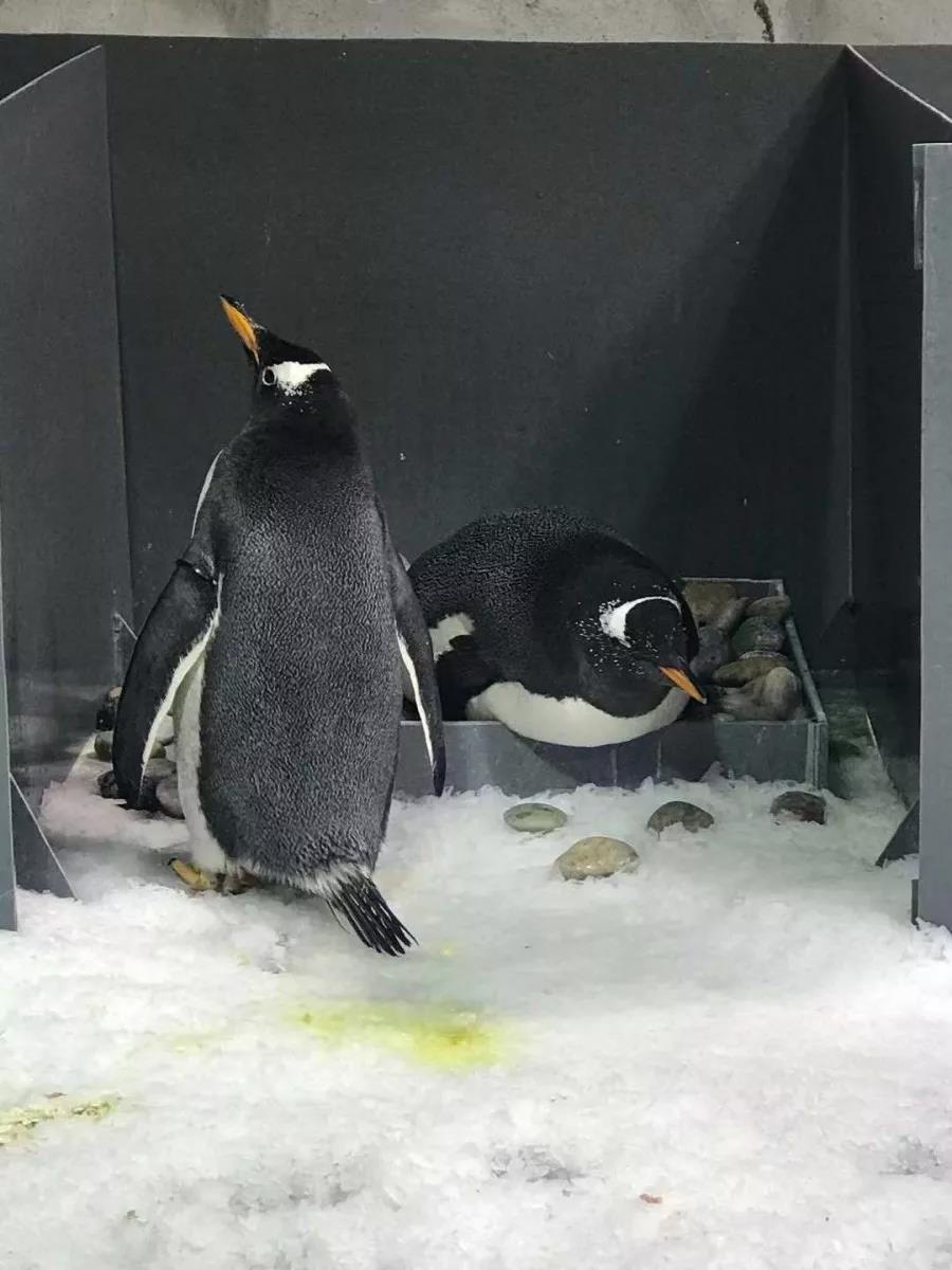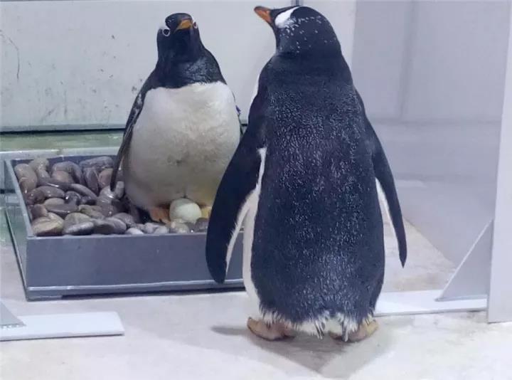 饲养员说小企鹅的爸爸和妈妈是非常相爱的