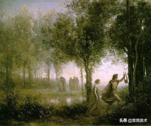 柯罗油画《从冥界带走欧里狄克的俄尔普斯》