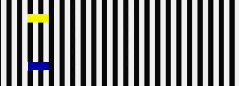 注视黑色点点时,灰色长条就会开始与橘色的背景融合在一起变成蓝色或绿色;但当你的眼神离开黑点后,长条又会变成灰色的了。