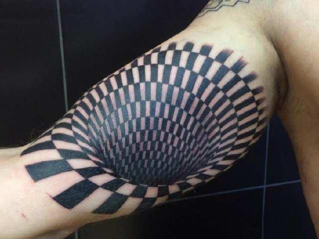 这个旋涡的平面纹身看起来好像在手臂上有一个无底洞那样,你们想纹一个吗?