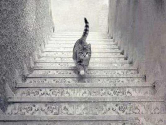 很多人一眼看过去,他们认为没什么特别,都觉得这幅图只是一只猫咪在上楼梯。但如果你仔细看看,这只猫是上楼梯还是下楼梯?