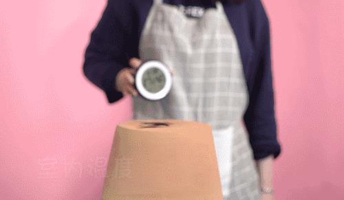 再将一个大的花盆套在小花盆外面,大花盆的漏水孔不用堵住。