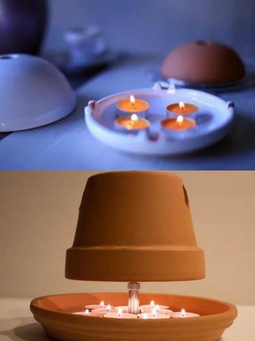 其实这种自制取暖器早几年就出现了,制作材料很简单,蜡烛+砖+花盆就搞定了,成本超低的,据说能将室内温度提升10度呢,外形酷似农村火盆,但比它可暖和多了,毕竟火盆只能靠近取暖。