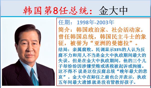 8.韩国第8任总统:金大中,任期: 1998年-2003年。