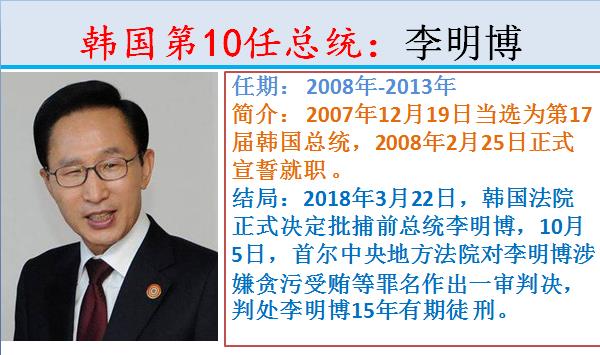10.韩国第10任总统:李明博,任期: 2008年-2013年。