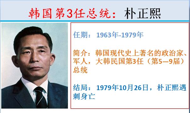 3.韩国第3任总统:朴正熙,任期: 1963年-1979年。
