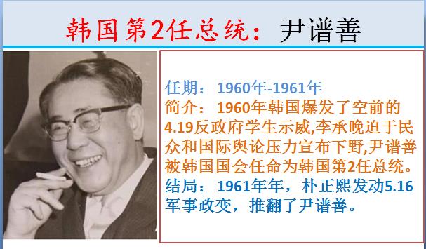 2.韩国第2任总统:尹谱善,任期: 1960年-1961年。