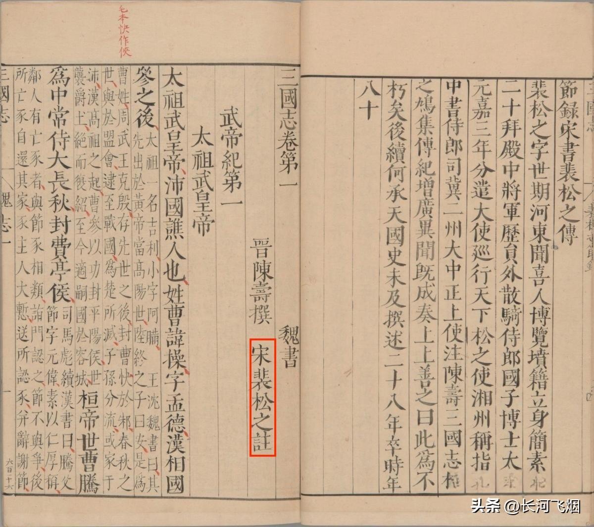 而对于纪传部分,多亏了南朝宋·裴松之所作的注,极大地丰富了史料,裴松之注释的字数都快赶上陈寿的原文了。裴松之的注一出来,后人读《三国志》,一定是要读裴松之的注的。尤其是现在,更是如此,因为当时的很多史料如今都失传了,只有裴松之通过引用的方式才把部分史料保存下来。