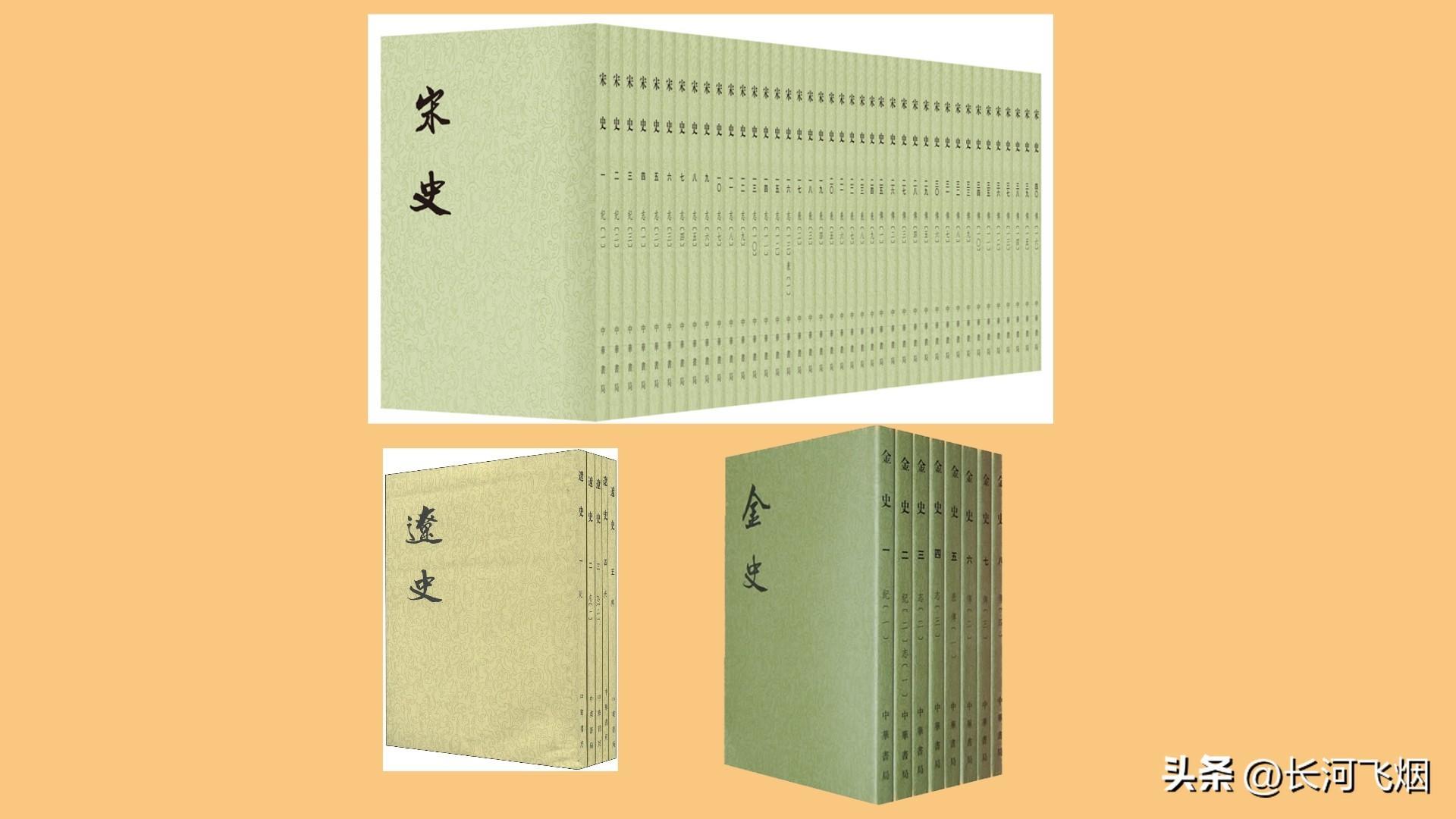 第四部分:元修三史,包括《宋史》《辽史》《金史》,它们记载的是宋朝、辽朝和金朝的历史,这三部史书都是元朝修的。